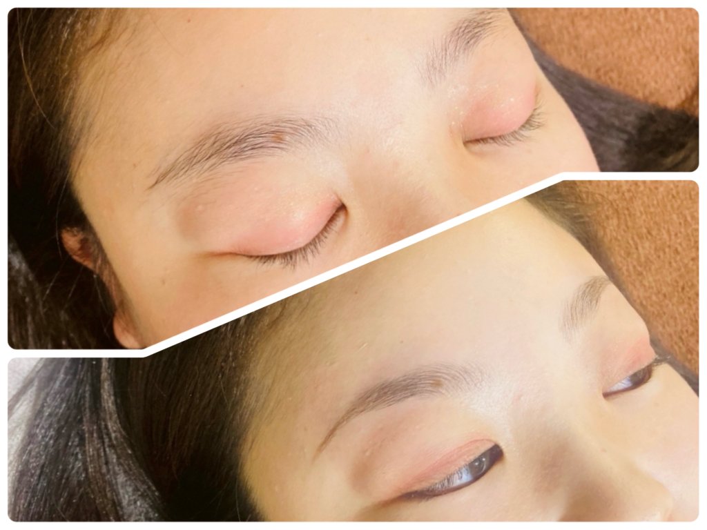 自眉が短いと立ち上がりがうまくいかない為、施術が出来ない場合がございます。 自己処理は2週間以上空けて、自眉7mm以上ある状態でご来店ください。。